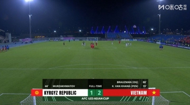 比赛第88分钟,吉尔吉斯斯坦球员自摆乌龙,越南U23最终以2-1取得本场比赛胜利。